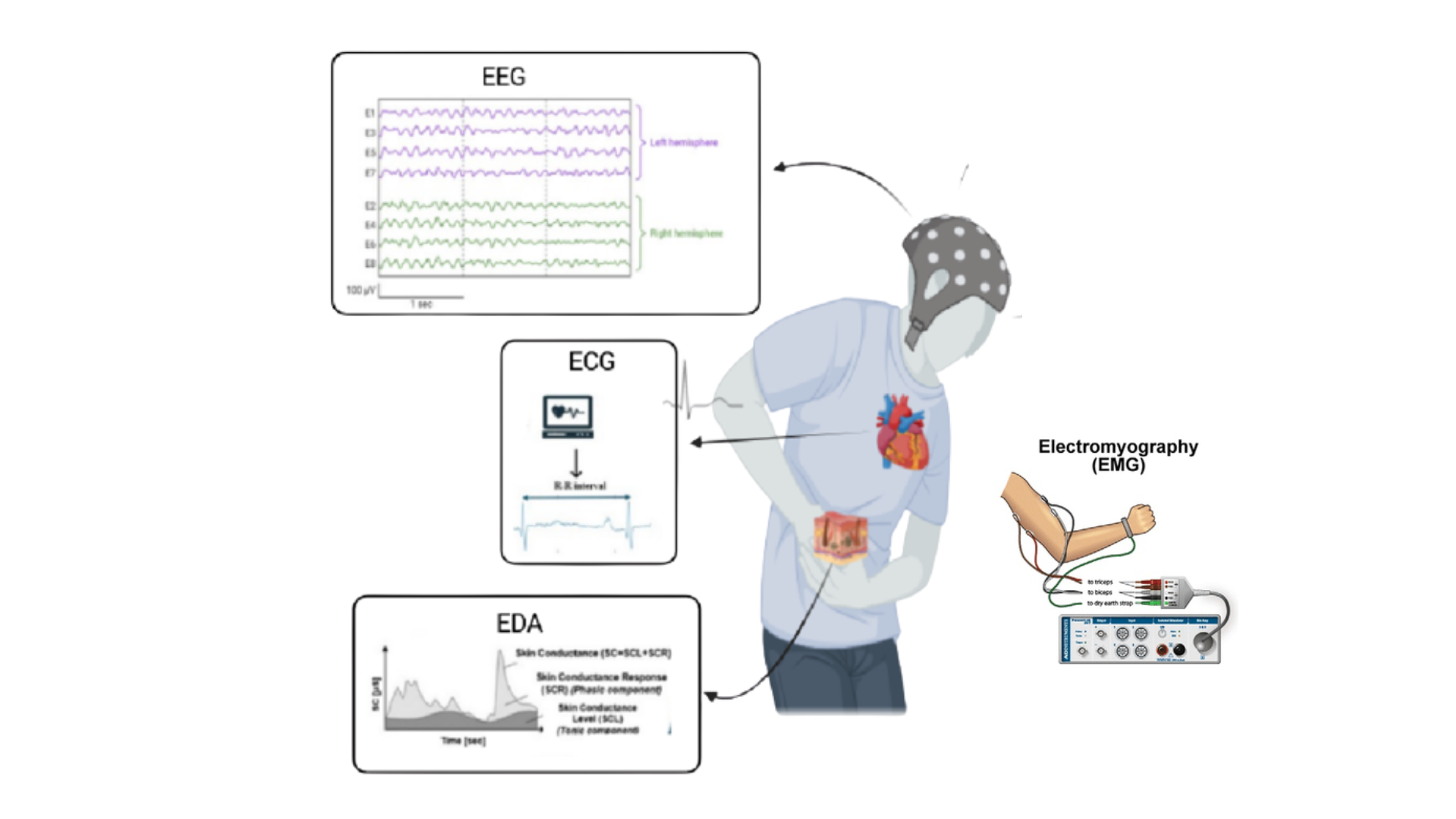 - Physiological Signals Monitored: ECG, EDA, EEG, EMG